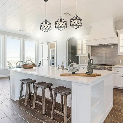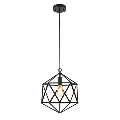 Illuminate your space this industrial inspired open metal caged pendant. The open geometric shaped shade in a classic matte black finish blends with both contemporary and mid-century modern décor. The simplistic design creates an eye-catching piece to any area in your home. The matte black metal canopy mounts to any standard ceiling junction box using the included mounting hardware. This versatile pendant is ideal to hang as a series of three over a kitchen island, a set of two over bedside tables and alone over a small dining table or kitchen sink.