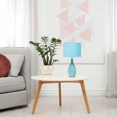 18.11″ Traditional Standard Ceramic Dewdrop Table Desk Lamp With Matching Fabric Shade Blue – Creekwood Home