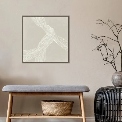 ART DESCRIPTION: Thin creamy parallel lines branch and expand across the beige canvas-like fibers of a muscle in this neutral abstract print. This Amanti Art canvas art print was created by Isabelle Z and printed by Amanti Art in Madison WI. The canvas is stretched by hand and finished with a float frame. Individually made using traditional custom framing techniques, it has the quality you would expect from your local frame shop. Because of our attention to detail and focus on artistry, architects, interior designers, and homeowners alike choose this framed canvas artwork to create beautiful living spaces.