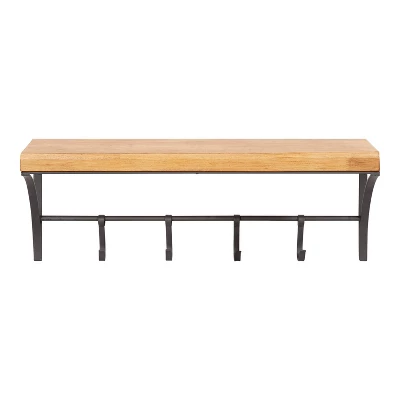 24″ X 9″ Ozias Shelf With Hooks Rustic Brown/Black – Kate & Laurel All Things Decor