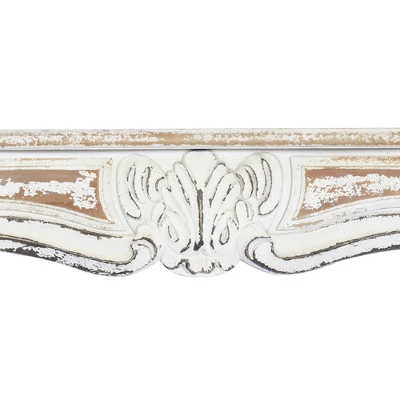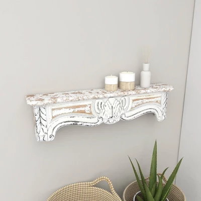 Create a balanced space in the most creative way with this expertly crafted wall shelf for captivating focal point. Maintain an organized home to create comfort and a welcoming atmosphere. Organize and decorate with this wall shelf that would add warmth and function to your vintage-themed home space. This item ships in 1 carton. Can be hung horizontally using the keyholes on the back; nails and screws not included. Suitable for indoor use only. This item ships fully assembled in one piece. Maximum weight limit is 20 lbs. This is a single white colored floating shelf. Wood wall shelf features a single shelf. Vintage style.