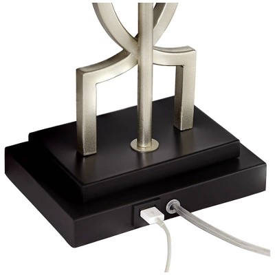 360 Lighting Evan Modern Table Lamps 28 1/2″ Tall Set Of 2 Brushed Nickel With USB Charging Port White Rectangular Shade For Bedroom Living Room House