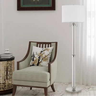 Cal Lighting makes this high styled Contemporary Metal/Acrylic floor lamp comes with a fabric drum shade and is 60″ tall. Brushed Steel finish on the base. This lamp uses one 150 watt 3-way bulb which gives you the option to adjust the light level to best suit your needs. (Bulb is not included.) This lamp will be a great addition to your office, living room, family room, or bedroom.