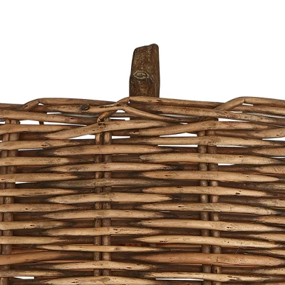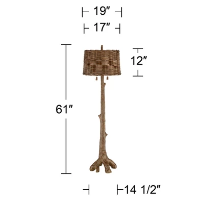 This rustic lamp design was inspired by the great outdoors, the majestic Sequoia tree. The resin lamp body is crafted to resemble a strong and enduring tree trunk, and comes in a faux wood finish. A brown wicker drum shade on top is the perfect accent to this rustic design. The design takes two light bulbs, each of which can be operated by a pull chain that resembles a rough plug of wood.
