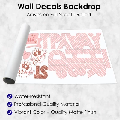 1st Birthday Little Miss Onederful Wall Decals Backdrop includes 1 sheet of vinyl wall stickers that include letters and shape pieces that form the perfect Happy Birthday backdrop for your Girl First Birthday Party. Wall Decal sheet measures 50 inches wide by 16.5 inches tall. Pieces range in size from 26.5 x 5.75 inches to 2 x 2 inches. Effortless Decor: The 1st Birthday Little Miss Onederful stickers are an easy DIY party decoration that will make a big impact at your celebration. Stick them on a flat wall surface to create that picture-perfect setting and then grab your camera to capture all the fun. Easy to Use: 1st Birthday Little Miss Onederful vinyl decals are easy-to-peel and repositionable. Wall art stickers will adhere to various surfaces including painted walls, plastic, wood, glass, and metal. To use, make sure your surface is clean and dry. Slowly peel the sticker from the paper to avoid tearing and smooth over with your hand. They are also easy to remove, leaving no residue. High-Quality Supply: 1st Birthday Little Miss Onederful wall stickers come with a quality matte finish and vibrant colors. They are printed on water-resistant professional quality material and will arrive on one full sheet rolled. Made In The USA: 1st Birthday Little Miss Onederful Wall Decals are designed and manufactured at our Wisconsin facility using materials that are Made in the USA. 1st Birthday Little Miss Onederful Vinyl Stickers uses a No-Mess Glitter Print: Our vinyl stickers are designed with a printed image of glitter, eliminating glitter flake while maximizing bling effect!