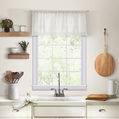 The hemstitched rod pocket window valance kitchen curtain cafe features a crisp, classic design, the inviting color is simply refreshing. Rod-pocket styling fits rods up to 1.5″. Double hem stitching detail. Easy-care fabric. 55% Linen/45% Rayon. Machine washable. Valance sold individually.