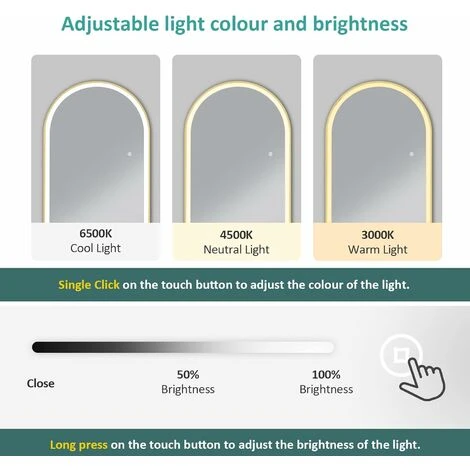 3 lighting colors: cold light 6500K, warm light 3000K, neutral light 4000K. Click on the touch switch of the full length mirror.