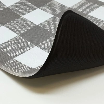 - Features a stylish buffalo check pattern on cushioned kitchen mat. Each buffalo check square measures 3″x3″.
