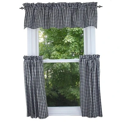 This primitive Heritage House Check Black & Cream Valance by Home Collections by Raghu is beautiful in its simplicity! The uncomplicated yet popular black & cream check provides a charming backdrop for any decor! Lovely on its own, or pair with coordinating tiers (as pictured / sold separately) for a more dramatic appeal!