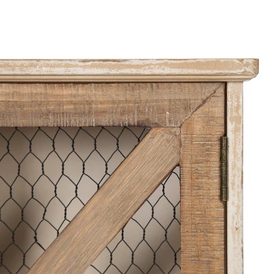 - VINTAGE FARMHOUSE CHARM: The Hutchins cabinet provides function and style with decorative charm. The wooden rustic and white-washed two-toned finish combined with the chicken wire doors adds an authentic farmhouse touch to your home decor