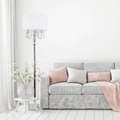 Torchiere Floor Lamp With Reading Light And Marble Glass Shade Antique Brass – Lalia Home
