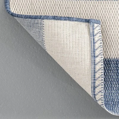 This striped area rug will be the finishing touch youve been looking! This floor covering can elevate your dining room or create a comforting environment on your patio. Made from durable synthetic fibers, this rug is built to last for years to come. Pair with nautical décor for a coastal feel, or farmhouse pieces for a rustic vibe. Kick back and relax with our pet-friendly and easy to care for area rugs. Keep your outdoor space beautiful and inviting with this outdoor rug great for patios and any outdoor space!