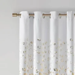 1pc 50″x63″ Blackout Kendra Metallic Animal Print Curtain Panel White/Gold – Intelligent Design