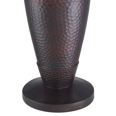 - Oil rubbed bronze finish on hammered metal. Oatmeal drum shade.