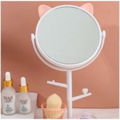 Table Mirror Desk Single-Sided Creative Cute Cat Dresser Makeup Mirror – White