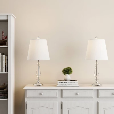 - Set of 2 table lamps with clear faceted crystal glass, perfect for your living room, entryway, bedroom, or office