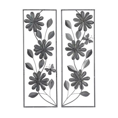 - Set of two panel 3D wall decor features sculpted floral structure with chevron texture on each petal inside a rectangular frame