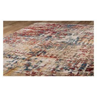 Abstract coloration infuses this particular rug design with a bold design that knows no bounds. The multicolor rug pattern is an explosive combination of tone and texture, as vivid red, yellow and blue shades scatter and collide across the off-white field. Woven polypropylene construction makes this decorative floorcovering elegant enough for formal spaces but durable enough for everyday areas.