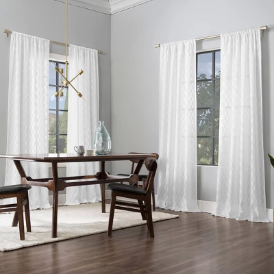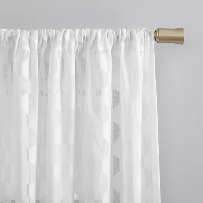 A beautiful addition to your home décor, this Scott Living Verge Geometric Clipped Jacquard Sheer Curtain Panel adds distinction to your space with a woven jacquard geometric design.