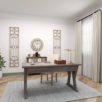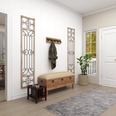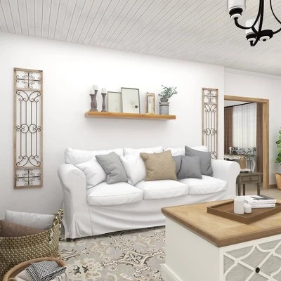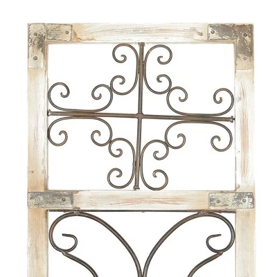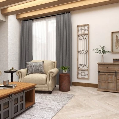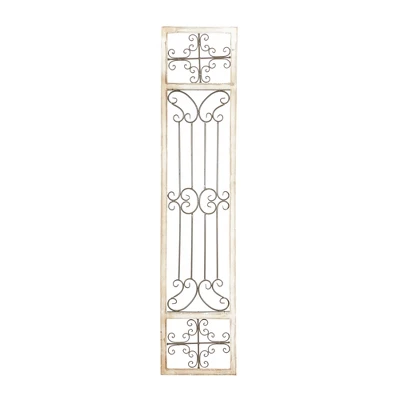 - •This wall decor features a long rectangular profile with elaborate iron scrolling patterns