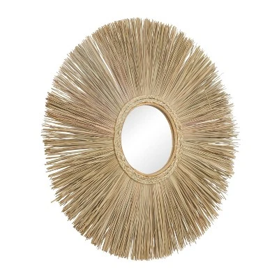 Wall mirrors offer a reflective property that helps naturally brighten up any room in your home. It makes a great centerpiece over your sofa or console table, or in your dining room or bedroom. Add an illusion of space to your boho-themed home space with this framed round mirror displayed on your walls. This item ships in 1 carton. Can be hung vertically using the D-rings on the back; nails and screws not included. Suitable for indoor use only. This item ships fully assembled in one piece. This is a single brown colored entryway mirror. Bohemian style.
